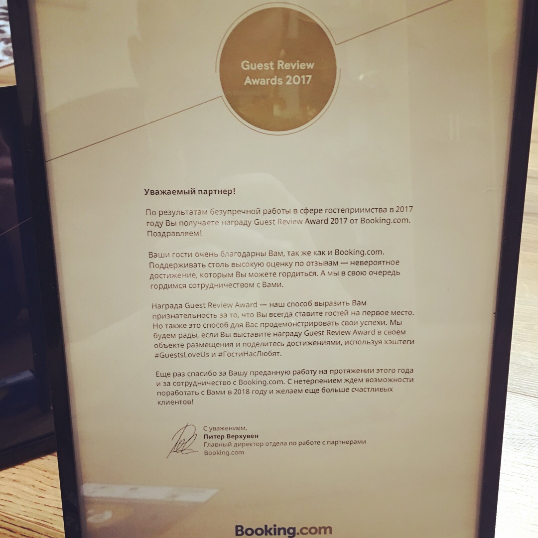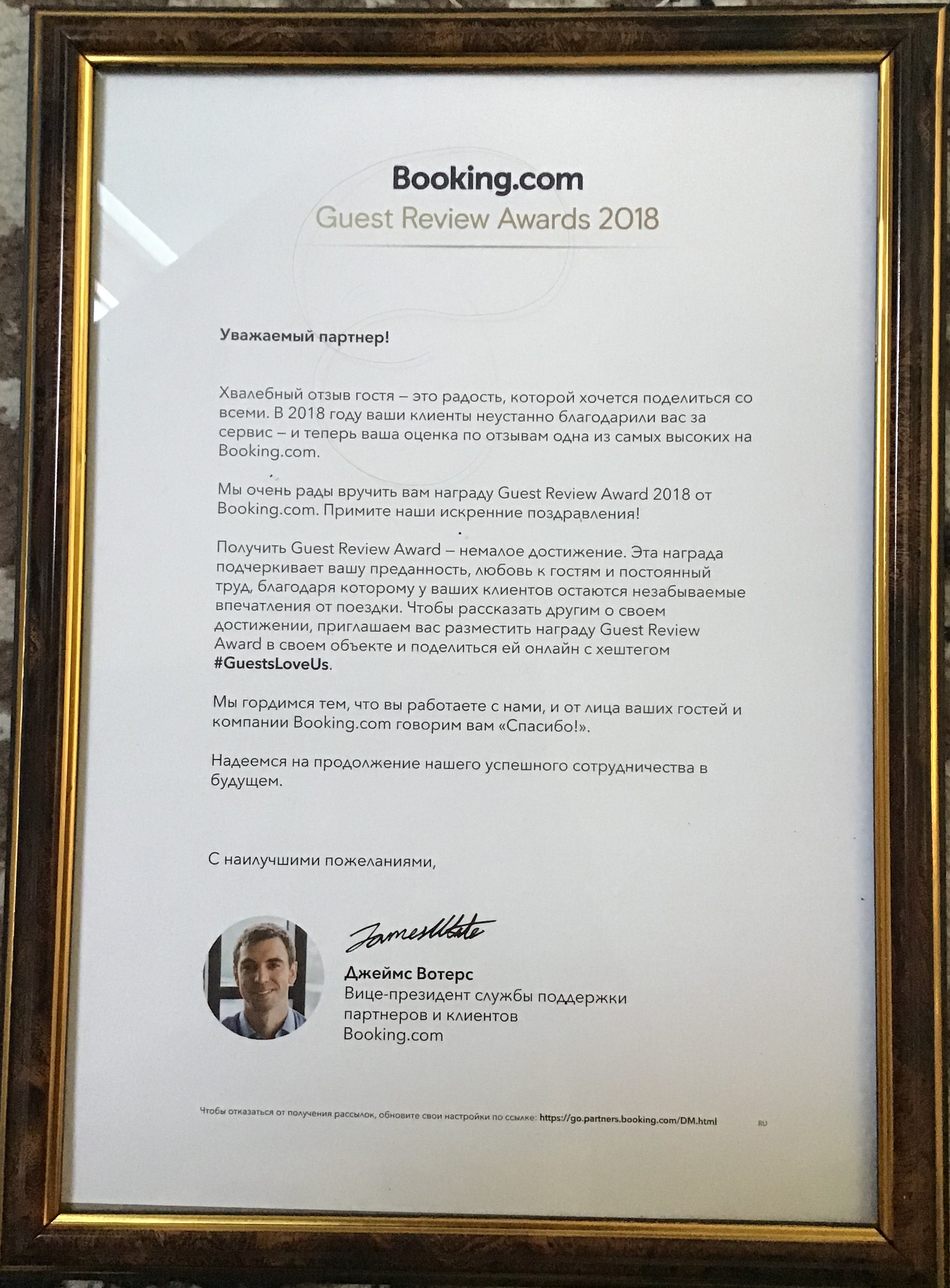По итогам года присвоено звание "Лучший выбор в городе Руза в 2019 году" согласно независимым отзывам на Booking.com