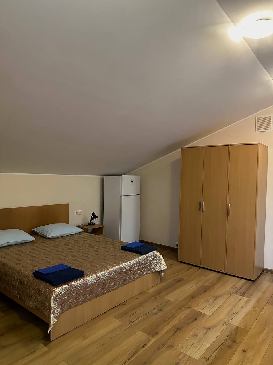 • Большие и просторные апартаменты с кухней и туалетной комнатой с душем. Даже есть кладовая с вешалками и стеллажами. Все чисто.